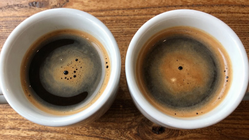 You’ll find that darker roast levels tend to produce a more bitter espresso, thanks to the longer roasting process that develops complex flavors and reduces acidity. Lighter roasts often retain more of the coffee’s natural acidity, making them more prone to sourness. So, if you prefer a smoother, less sour taste, opt for a darker roast. The roast darkness directly influences flavor complexity and whether your espresso leans towards sour or bitter.