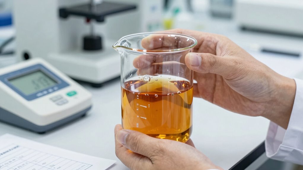 You can often gauge extract quality through visual clues like color indicators and clarity. A rich, golden hue usually signifies good extraction, while dull or overly dark colors might indicate over-extraction or impurities. Look for clarity and consistency; murky or oily appearances could suggest poor quality. Trust your eye, but remember that visual assessments are just rough guides and should be complemented by other testing methods when possible.