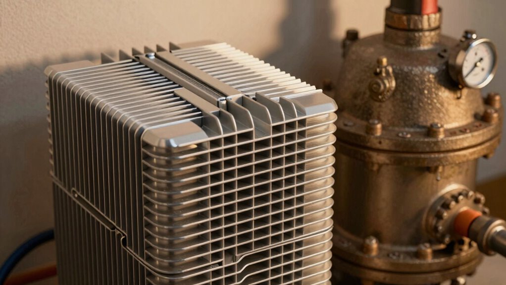 Maintaining your heating system is essential for ensuring reliable performance and longevity. Regular upkeep, like checking for leaks, cleaning filters, and scheduling professional inspections, helps prevent costly repairs. Thermoblocks generally require less maintenance since they have fewer moving parts, but they still need occasional checks to maintain efficiency. Boilers, on the other hand, need more frequent servicing to prevent corrosion and buildup, which can affect energy consumption. Over time, boilers tend to last longer—often 15-30 years—if properly maintained, reducing environmental impact through efficient operation. Proper maintenance can significantly extend the lifespan of both systems, ensuring optimal performance. Additionally, advancements in system durability are making modern boilers more resilient and longer-lasting. Modern technological improvements contribute to increased longevity and efficiency in both systems. Thermoblocks usually have a shorter lifespan but can be easier to service. In both cases, keeping systems well-maintained minimizes energy consumption and extends their usable life, making them more sustainable choices.