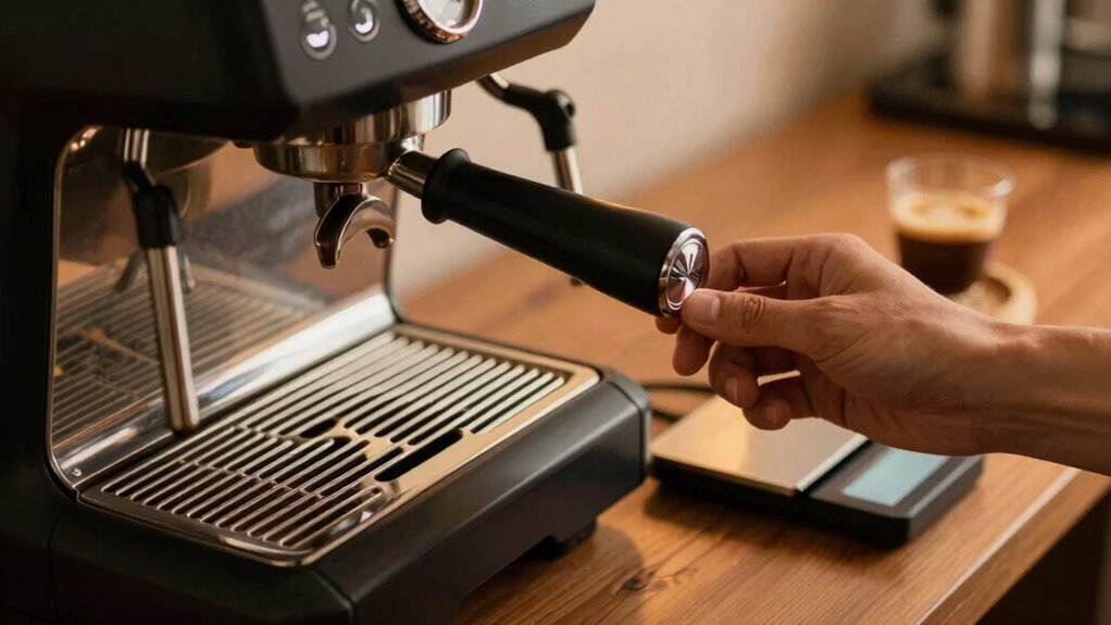 To make dialing in your coffee easier, use the combined shortcut of adjusting both brew ratio and grind size simultaneously. If your coffee tastes bitter or over-extracted, coarsen your grind and slightly increase the brew ratio to reduce extraction time. Underwhelming or weak brews benefit from a finer grind and lower ratio. Recognize how these adjustments interact, and you’ll quickly find the perfect balance. Keep mastering this method, and you’ll gain access to consistent, great flavors every time.