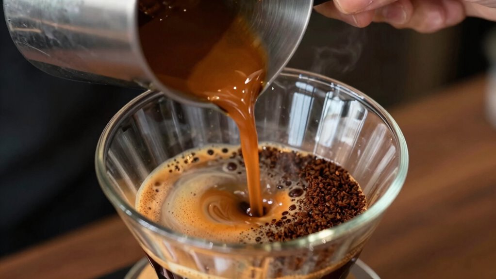 For espresso-style coffee, percolation is more suitable because it delivers the coffee strength and brewing consistency you need for a rich, concentrated shot. The fine grind used in percolation guarantees proper extraction, giving you that bold flavor. Immersion methods, like French press, won’t produce the same intensity or consistency needed for espresso. Stick with percolation to achieve the perfect espresso shot every time.