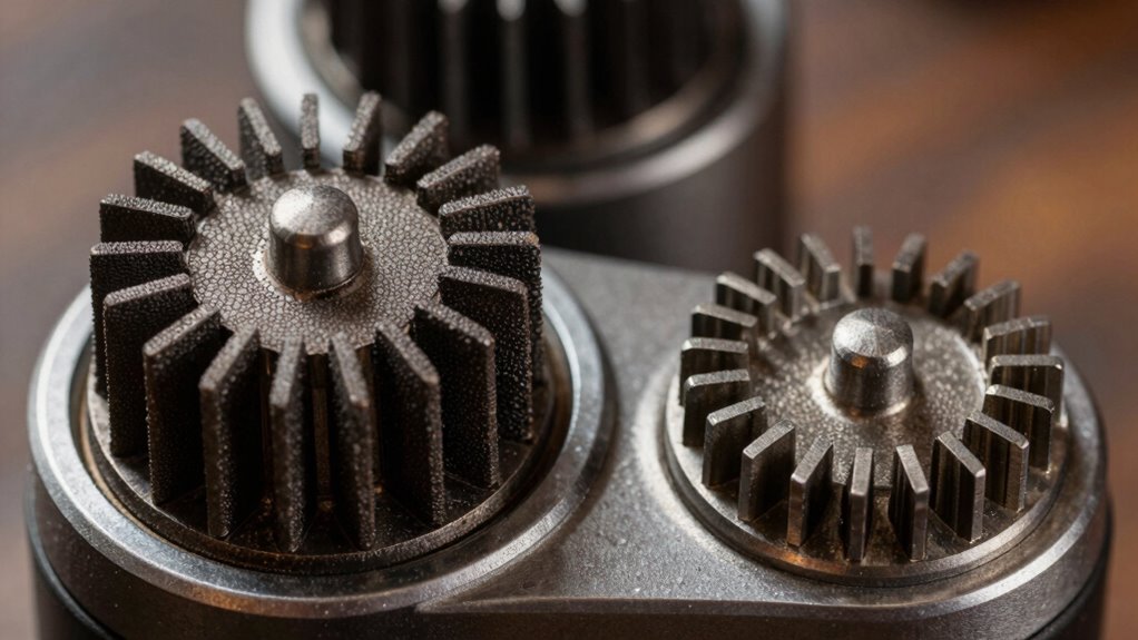 Bigger burrs alone don’t guarantee better espresso because factors like design, material, and maintenance matter just as much. While larger burrs can improve grind consistency and heat management, if they’re poorly designed or aren’t well maintained, your puck can suffer. Proper alignment and regular upkeep ensure consistent results regardless of size. If you want to learn how shape, material, and care influence your grind quality, keep exploring these essential aspects.