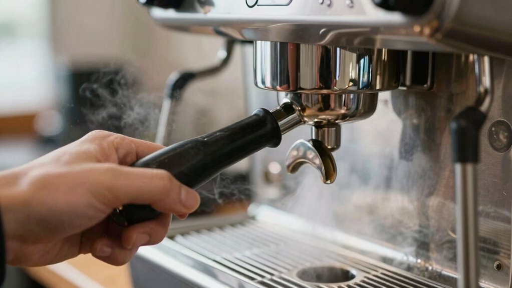 Regular maintenance helps prevent mineral buildup that can clog your machine and cause damage over time. It also reduces mechanical wear, keeping parts functioning smoothly longer. When you stay on top of upkeep, your espresso machine runs more efficiently and lasts much longer. Proper cleaning techniques play a crucial role in maintaining optimal performance and extending the lifespan of your equipment.