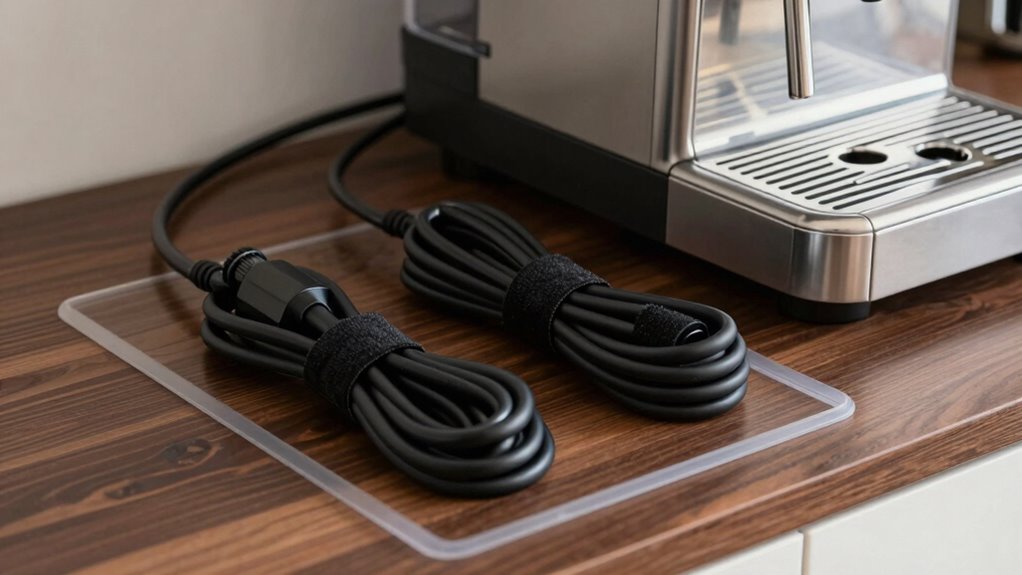 Keep cords tidy and secure with cable clips and Velcro straps for a safe, professional coffee station.