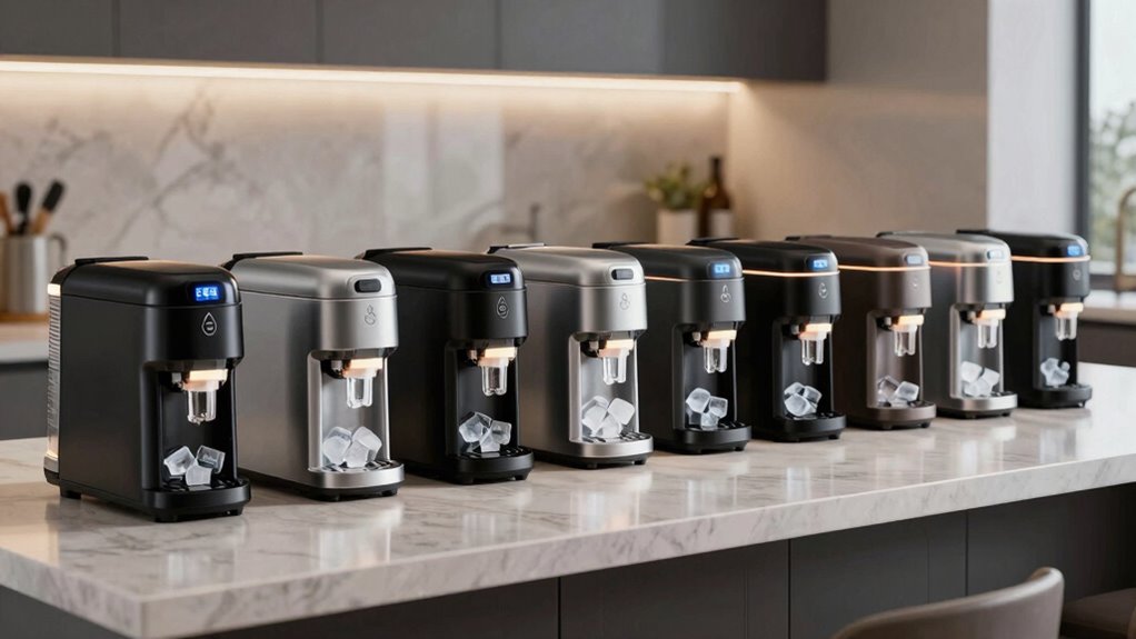 Choosing the right countertop nugget ice maker also means considering how portable and well-designed it is for your space. A portable unit typically weighs between 10 to 20 pounds, making it easy to move and reposition without hassle. Compact designs under 13 inches in height and width fit comfortably on most counters, whether in kitchens, bars, or outdoor setups. Features like sturdy handles and lightweight materials boost ease of transport while maintaining durability. A sleek, space-efficient design helps the ice maker blend seamlessly into various environments. Many models also include integrated drainage or water refilling systems, supporting on-the-go use and easy maintenance. Overall, a thoughtful design enhances convenience without sacrificing style or functionality.