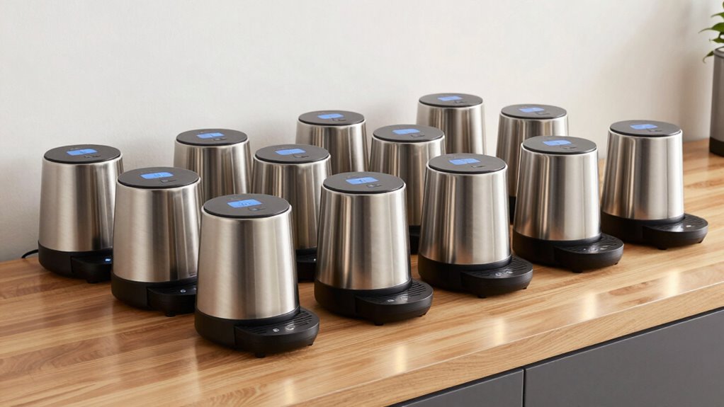 Ever wondered if these warmers waste energy? Honestly, most are quite efficient, especially those with adjustable temperature controls and automatic shut-off features. I’ve found that they use minimal power, so they keep your espresso warm without hiking up your energy bills. Plus, their low power consumption means you can enjoy perfectly heated cups without feeling guilty about your environmental impact. Isn’t that a win-win?