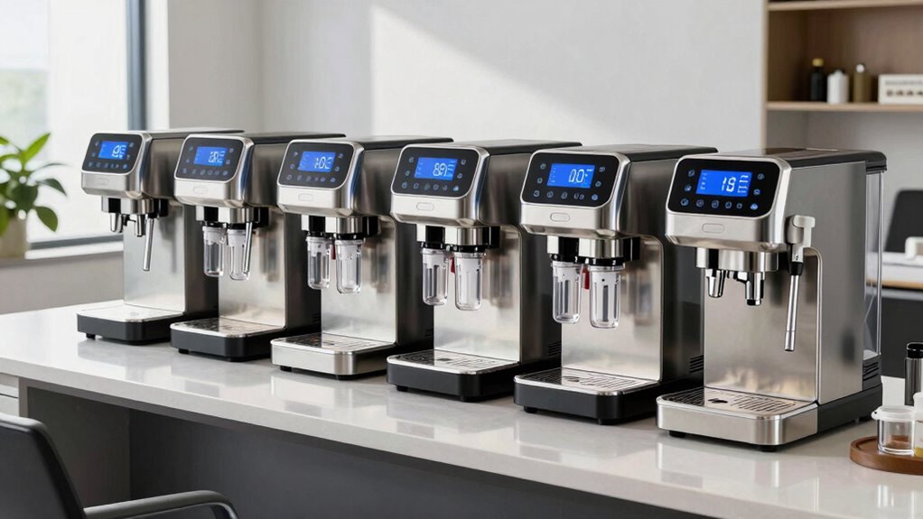 Choosing the right water softener for your office espresso machine is like finding the perfect tune—it keeps everything running smoothly and your coffee tasting great. With options ranging from salt-free filters to whole house systems, you can find the ideal match for your needs. Don’t let hard water dampen your coffee experience; instead, invest in a system that guarantees every cup is as rich and smooth as a symphony. Cheers to better coffee!