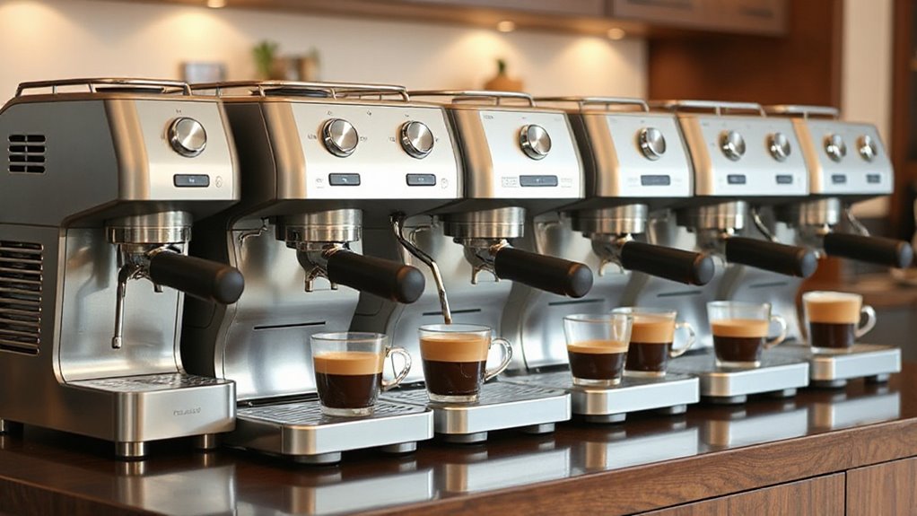 If you’re looking for the 15 best heat exchanger espresso machines under $1000 in 2026, I’ve got you covered. These models offer professional brewing performance, stable temperature control, and milk frothing capability—all at an affordable price. They’re perfect for home baristas who want quality drinks without premium costs. Keep exploring, and I’ll show you the key features and top options to make your choice easy.