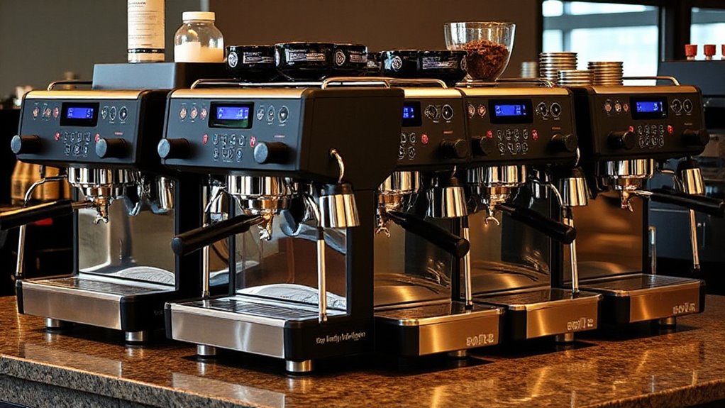 Yes, there are energy efficiency differences among these models. I’ve found that some machines feature advanced insulation, energy-saving modes, and better thermal management, which help reduce power consumption. When choosing, I recommend looking for certifications like ENERGY STAR or models with adjustable settings. This way, you can enjoy great espresso while being mindful of your energy use, saving money and reducing your environmental impact.