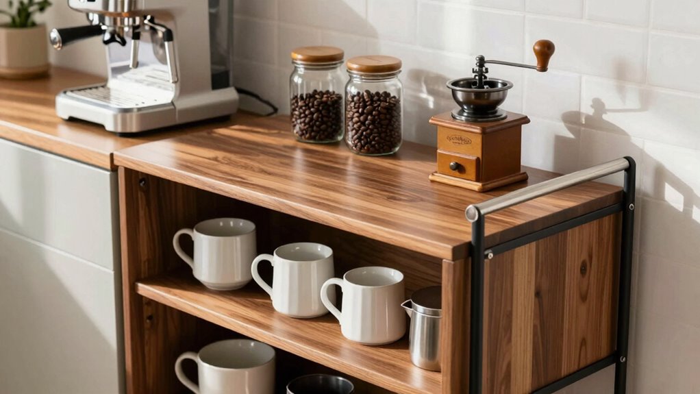 - Consider versatile carts with multiple tiers and adjustable shelves for optimal coffee station organization.