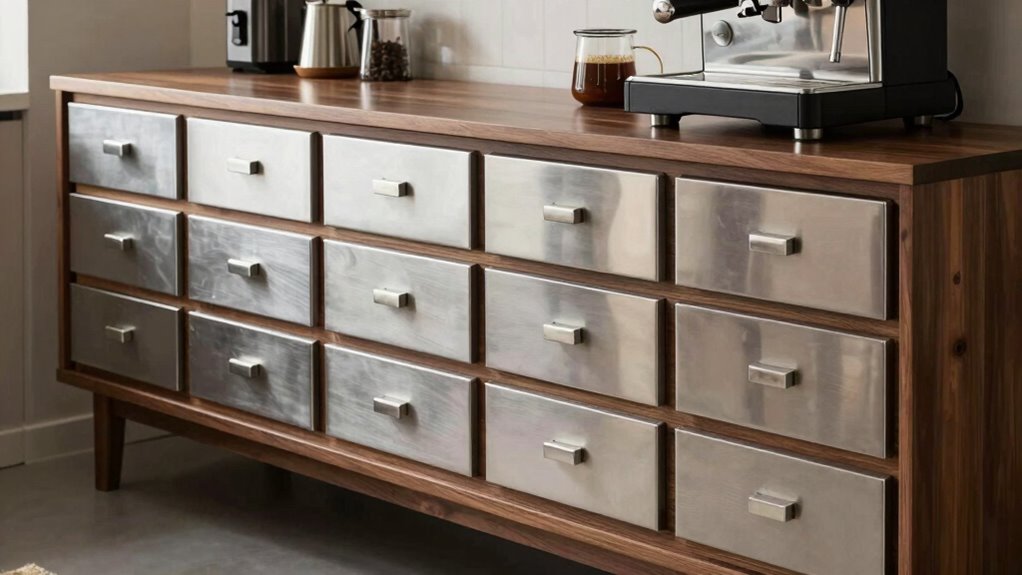 If you’re looking for the best knock box drawers for your home coffee setup in 2026, I’ve got you covered. From durable stainless steel options with impact-resistant features to sleek, space-saving designs, there’s something to fit every space and style. Each one offers easy cleaning, noise reduction, and stability. Stay tuned—more details follow to help you find the perfect match for your coffee station.