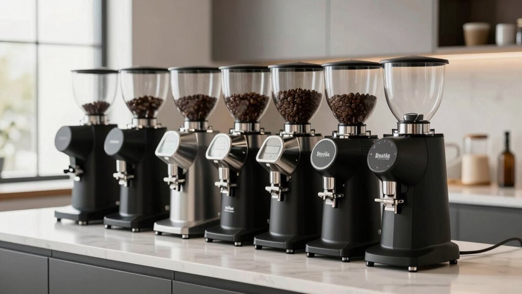 When selecting a low retention espresso grinder for your Breville Barista Express, ease of cleaning becomes a top priority. A grinder designed with minimal leftover grounds speeds up maintenance and keeps your machine running smoothly. Features like detachable, magnetic spouts and removable burrs make cleaning internal parts straightforward, saving time and effort. Anti-static technology is also essential, as it reduces static cling, preventing grounds from sticking to surfaces and simplifying cleanup. Additionally, smooth, burr-free surfaces and accessible components help eliminate grounds buildup during cleaning. Grinders engineered for low residual retention allow for regular maintenance with brushes or compressed air without hassle. Overall, choosing a grinder with these features ensures that cleaning is quick, easy, and effective, helping you maintain peak performance and flavor.