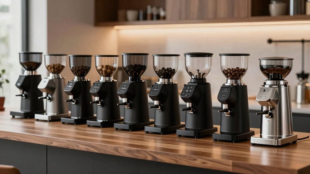 Ever wondered how to get the best value in a low retention espresso grinder without breaking the bank? Many grinders under $1500 offer excellent quality, with precise grind adjustments and low retention features that improve extraction. These options often strike a balance between cost and durability, ensuring reliable performance over time without sacrificing grind consistency. Investing within this range grants access to advanced tech like anti-static coatings and stepless adjustments, enhancing your brewing experience. While some ultra-premium features may be missing, these grinders still deliver professional-grade results suitable for home use or small cafes. When evaluating value, consider factors like grind retention, build quality, user controls, and included accessories—focusing on what truly enhances your espresso journey rather than just initial price.