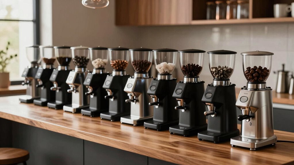 Just like a master barista, choosing the right grinder transforms your coffee experience. These low retention options under $500 are your secret weapons for fresher, richer espresso shots. Whether you prefer a precise setting or a quiet grind, there’s something here for you. Think of it as revealing a new chapter in your coffee journey—where every sip echoes craftsmanship, and every grind whispers, “Perfection starts here.” Ready to elevate your brew?
