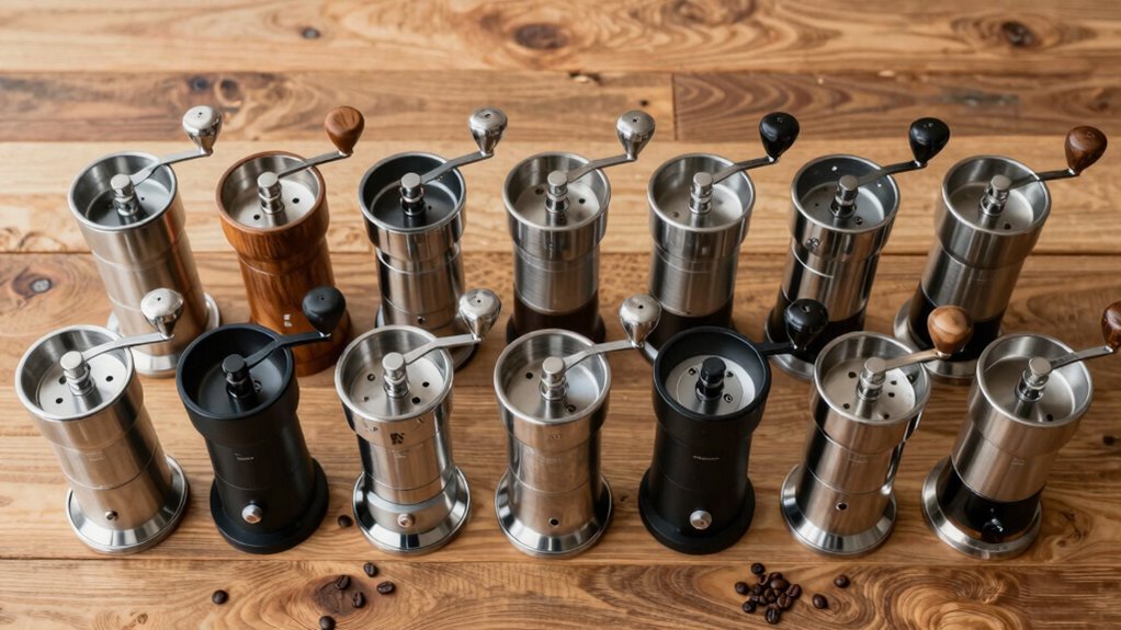 Choosing the right manual grinder is like selecting the perfect brush for a masterpiece—you want precision, control, and a touch of artistry. With so many options, you’re the artist shaping each shot of espresso or pour-over. Trust your hands, experiment, and soon you’ll craft coffee as smooth and vibrant as a well-painted canvas. Remember, the right grinder turns everyday beans into a work of art—your personal coffee masterpiece.
