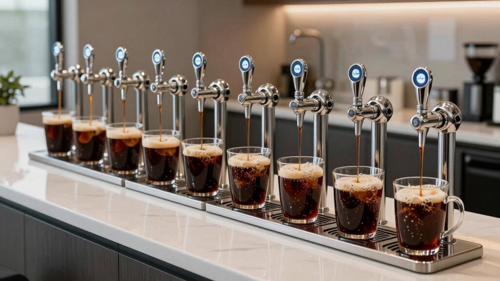 You’ll be surprised how seamlessly these kits fit into your office setup. I’ve found that most nitro cold brew keg kits are designed for easy integration; just connect, chill, and serve. No need to overhaul your existing coffee station. It’s almost too simple—like adding a new flavor to your routine without any hassle. So, yes, upgrading is straightforward and efficient, making your office coffee game stronger with minimal effort.