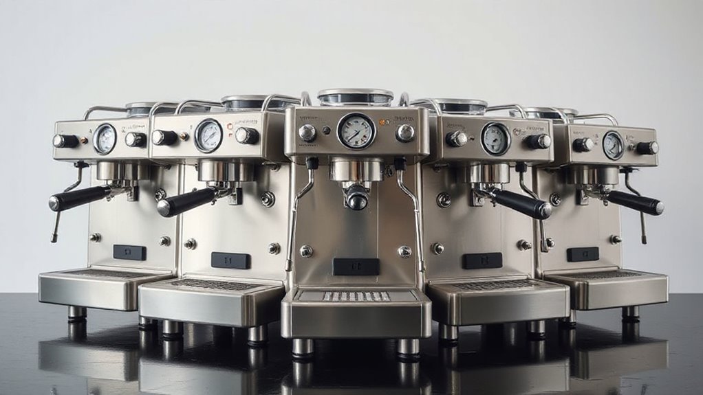 When selecting a PID espresso machine with a rotary pump, control precision becomes a key factor in achieving consistent, high-quality shots. PID controllers allow for precise temperature regulation, often within ±1°C, helping maintain ideal water temperature throughout extraction. Adjustable PID settings let you customize brewing temperature stability based on coffee type or personal preference, enhancing shot consistency. This consistent temperature control minimizes fluctuations that can harm flavor and quality. When paired with a rotary pump, PID systems ensure steady pressure and temperature, resulting in more reliable extractions. Many advanced machines feature user-accessible controls, enabling on-the-fly adjustments for baristas seeking fine-tuned brewing. Overall, control precision options directly influence shot consistency, flavor clarity, and the ability to adapt to different coffee profiles.