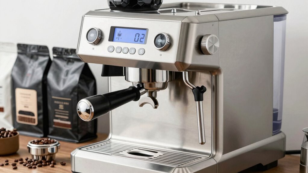 Absolutely, these machines are like versatile artists; they can handle various coffee types, from fine espresso grounds to coarser beans for Americanos. I love experimenting with different beans, knowing my machine adapts smoothly, much like a chameleon changing colors. Just remember to adjust grind size and tamping pressure. With a little tweaking, you’ll enjoy a rich, robust brew no matter your coffee choice, making every cup uniquely yours.