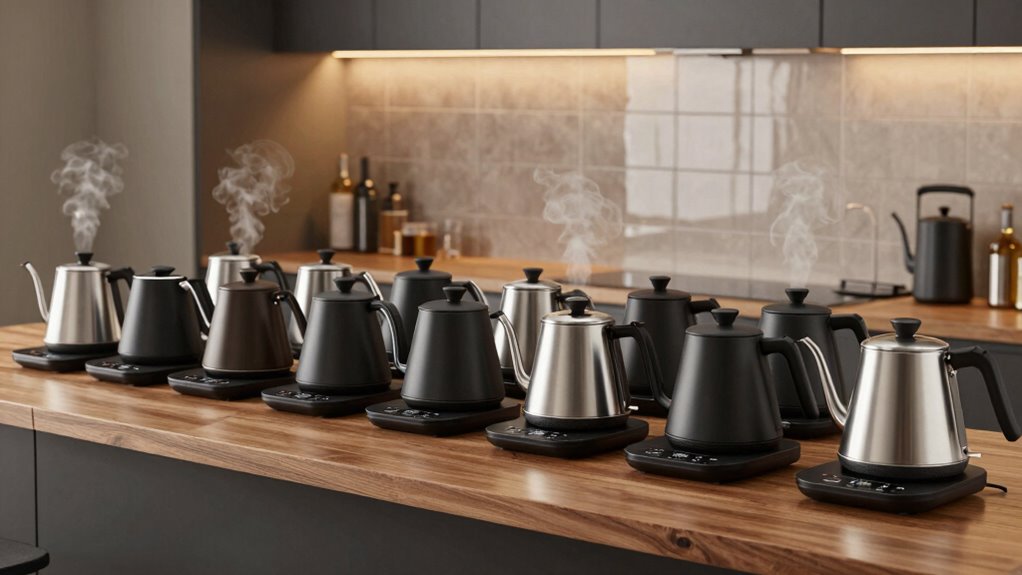 - Top models offer precise temperature control with ±1°F accuracy, ideal for perfect pour-over coffee and tea.